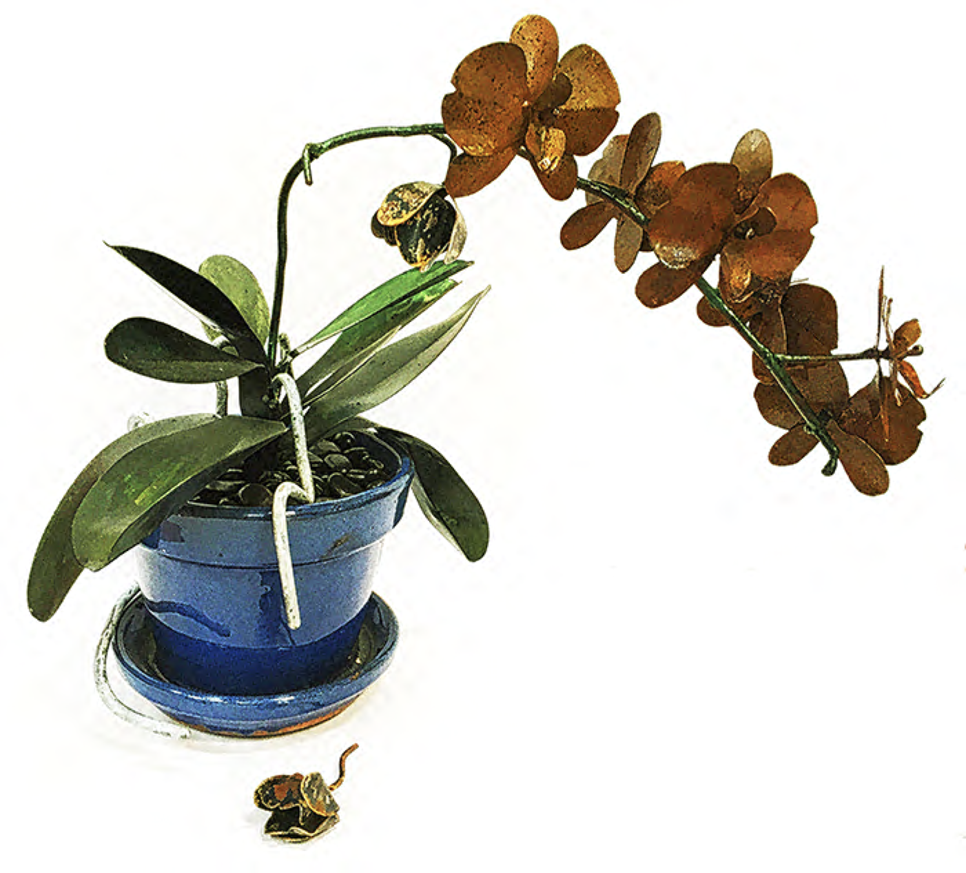 My latest sculpure is of flowers. Unexpectedly, the full isolation during the Covid year made me tranquil. Consequently, I moved on from the existential worries of previous work. The beauty of flowers, realistic or imagined and how to make them of welded steel engages me now.