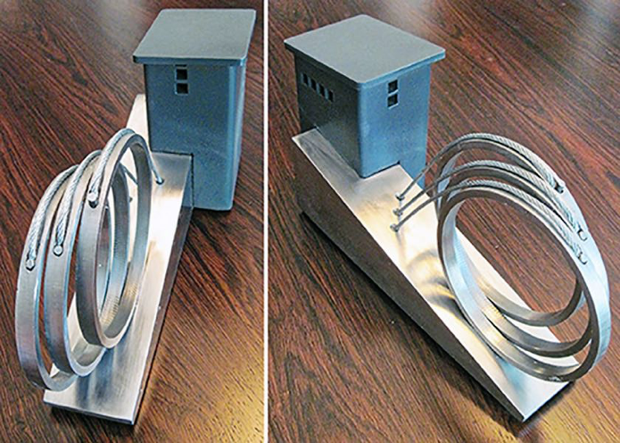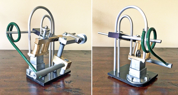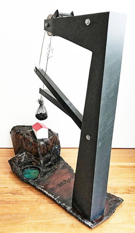 Machine No. 8. "Oppression." 2016. Machined, welded and partially painted steel with steel rope and machine parts. (7.25x12.5x4.5). Private Collection.