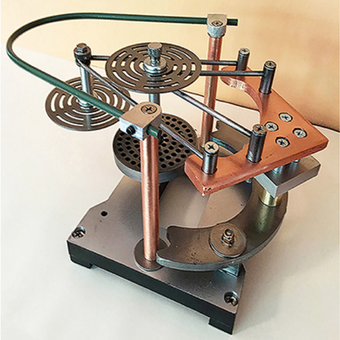 Abstract Machine No. 7. 2015. Machined aluminum, copper and brass with cast-iron components and machine parts. (7x14x9). Private Collection.