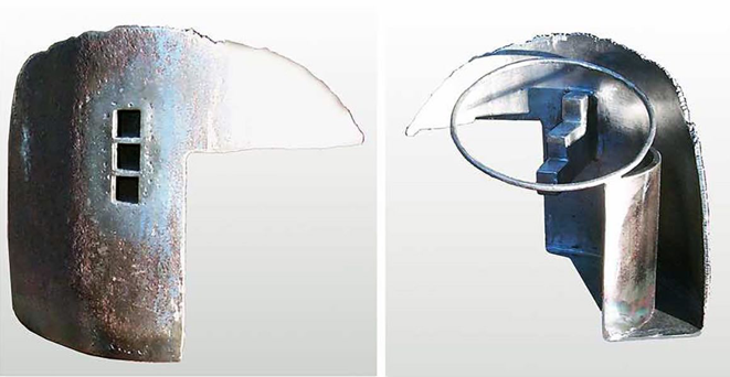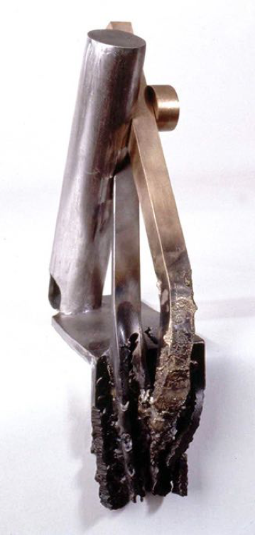 Interaction. 1999. Welded steel base and cylinder with machined and partially melted brass components. (17x10x4.5). Private collection.