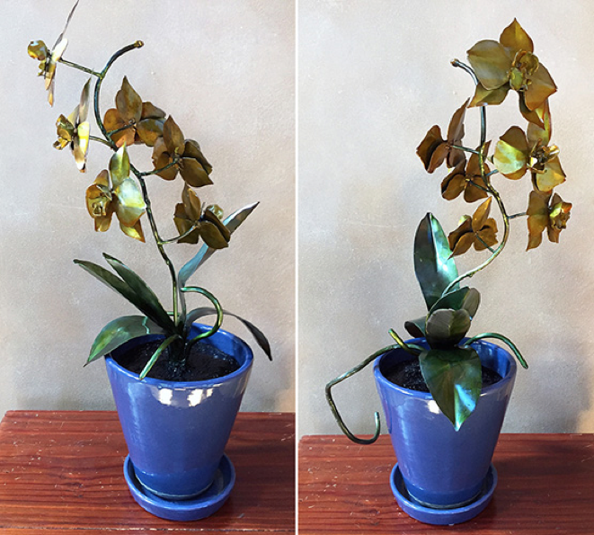 Phalaenopsis: Full Bloom. 2020. Surface-treated welded steel and ceramic flower pot. (22.5x12x9). Private Collection.